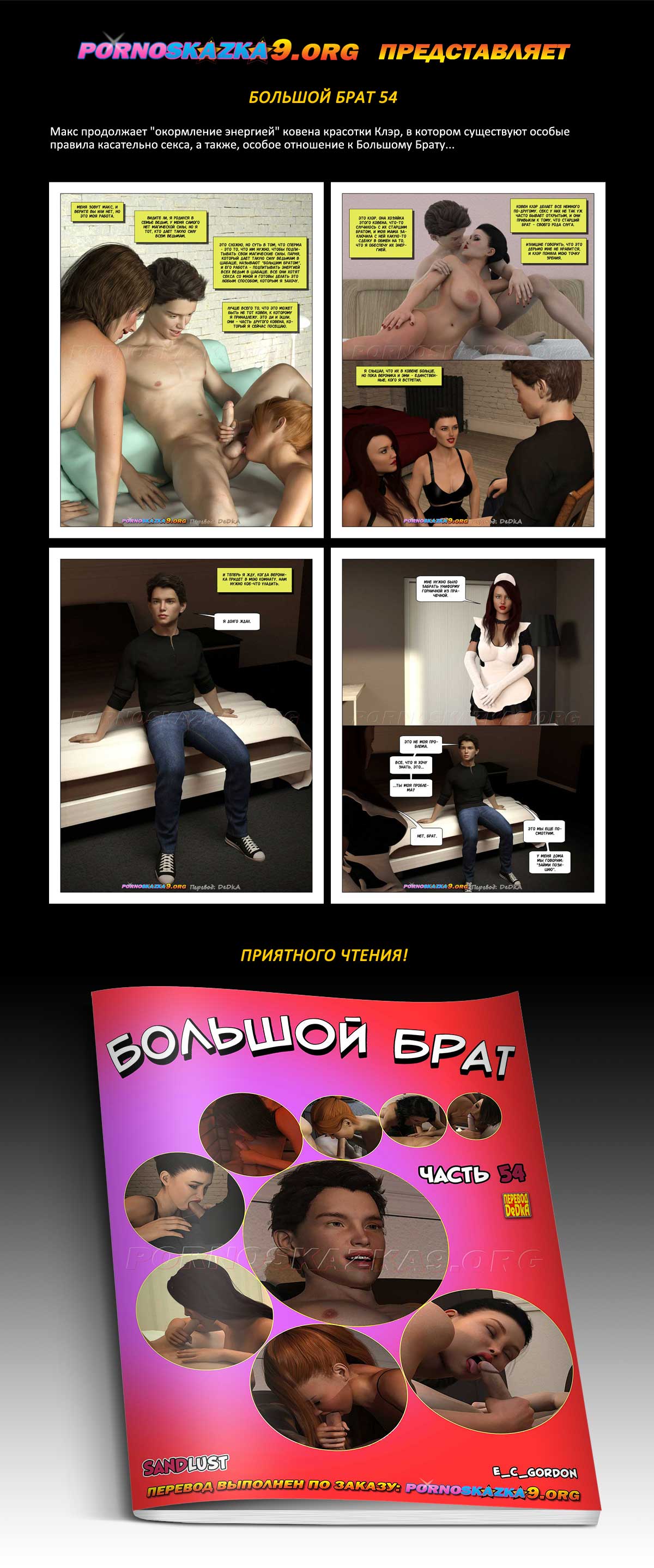 Порно комикс Большой брат. Часть 54. Макс продолжает «окормление энергией» ковена красотки Клэр, в котором существуют особые правила касательно секса, а также, особое отношение к Большому Брату…